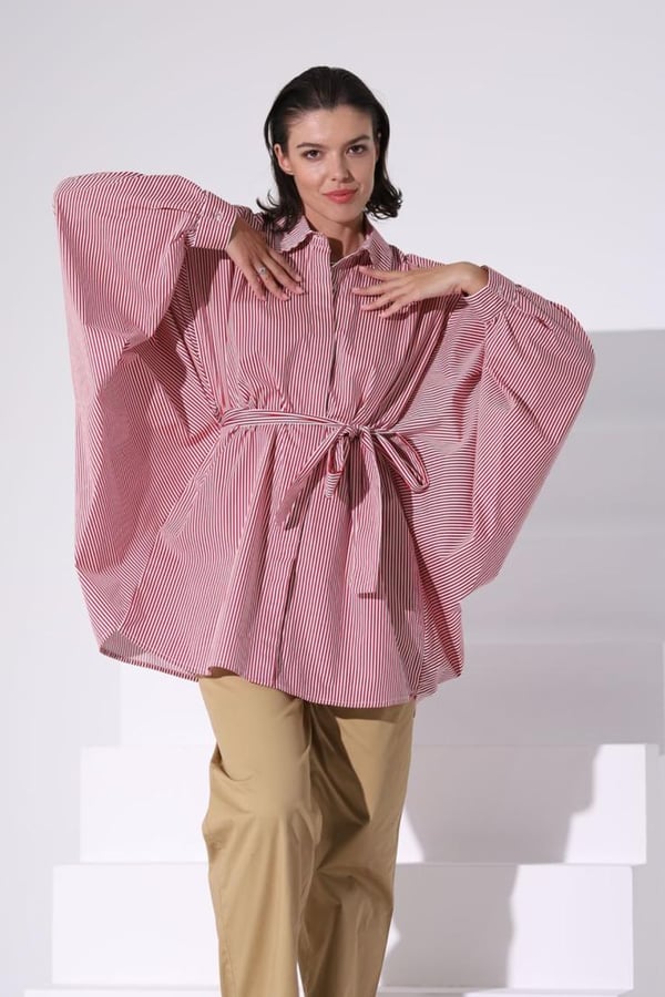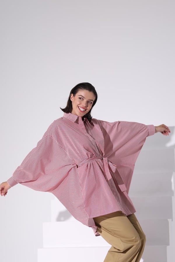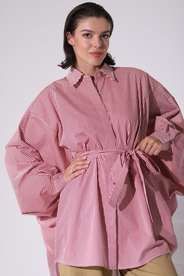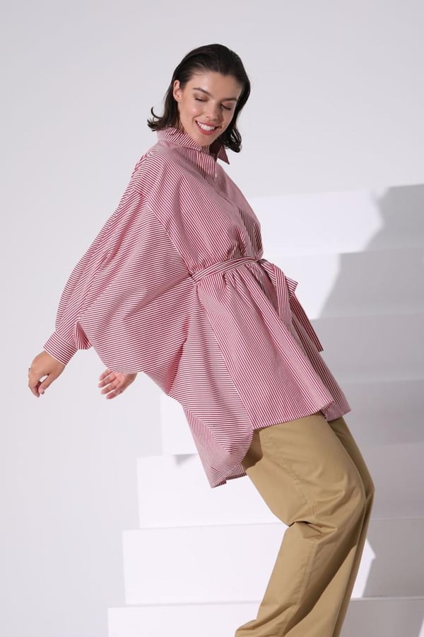 Stripe Red and White Belt Top Free size