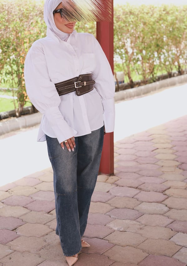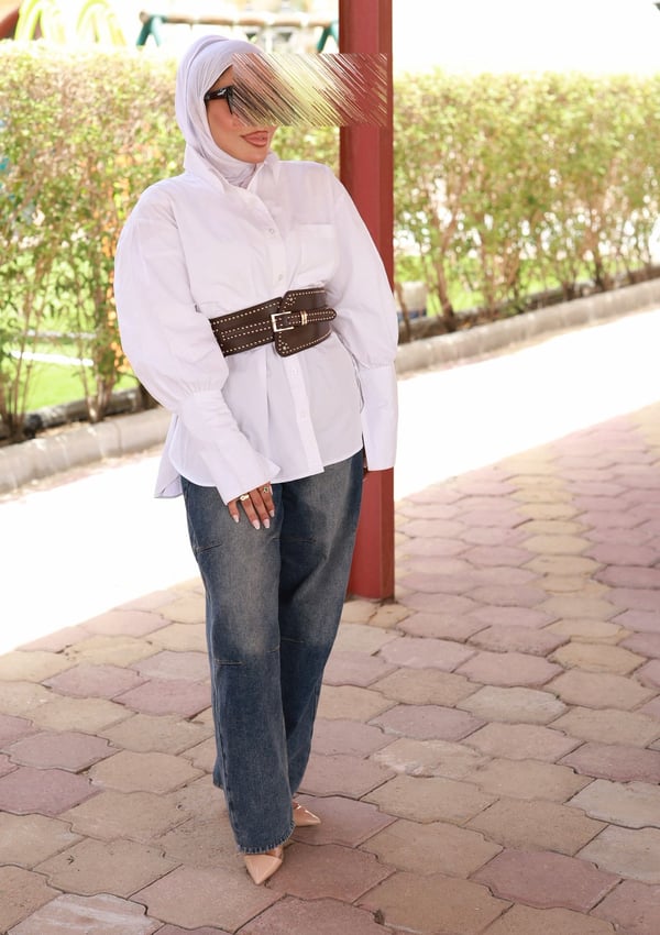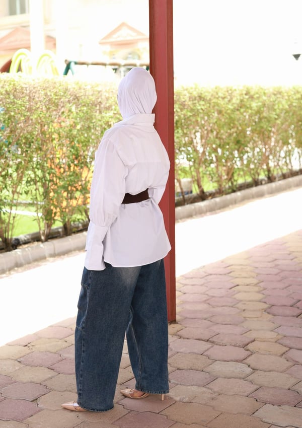 White Top With belt Free Size